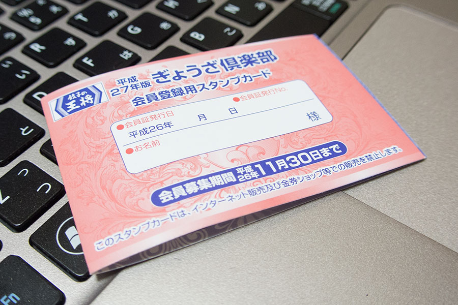 私と餃子クラブの出会い。それは先日王将で食事をした時のこと。会計を済ませた私に、妙齢の女給がカードを手渡してきたのです! その紙片にはぎょうざ倶楽部と銘打たれ、押印する欄が設けてありました。