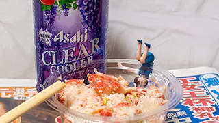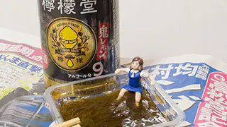 氷結®無糖 レモンと活ちくわとフチ子今週のフチ子さんは〈落ち葉のフチ子〉。その落ち葉を取っ払って、頭から活ちくわにブッ込んでみました。とにかく変わった事をやって一つでもウケればいい。さながら売れない芸人の如き気概に基づいた行動です。大目に見てあげて!