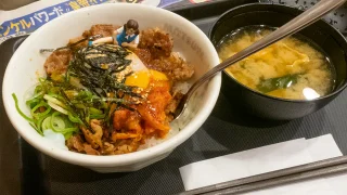 今宵は期間限定の焦がしねぎ焼き鳥丼。馬券がトリガミだったので、鶏系のメニューを発注してみました。ニンニクだれがオイシイ。みそ汁と合わせて 621円(税込み)