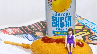 アテはファミから塩。おつまみにも合う大粒サイズのからあげ。温めてから食べるとおいしい。計 258円(税込み)。