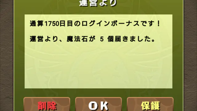 ビデオゲーム 通算1750日目のログインボーナス 暇を潰そうと思う。スマホでパズドラをやればいいんだろ、ってねー!(逆ギレ) そんな幼稚めいた私の不機嫌な振る舞いを諌めるかの如く、運営から通算1750日目のログインボーナスが来た。魔法石 5個をもらいー。ヤッター! なんたるグッド・タイミン... 2018.03.10 ビデオゲーム