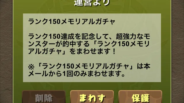 ビデオゲーム ランク150メモリアルガチャ 6月。パズドラにログインすると、運営からなんか来てた。 その名もランク150メモリアルガチャ。ランク 150達成を記念して、超強力なモンスターが的中する「ランク150メモリアルガチャ」をまわせます!との事。でもオレ、ランク 150 達成した... 2015.06.02 ビデオゲーム